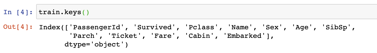 -> Train Set 에는 아래와 같이 총 12 개의 컬럼이 존재한다. 그 중 11개는 feature, Survived 는 생존 여부를 알려주는 Label이다.