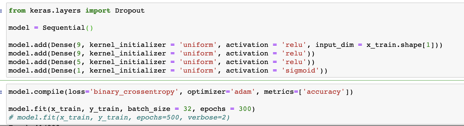 간단한 케라스 코드를 통해 예측 모델을 생성하고, Kaggle에 올려본 결과 67% 가 나왔다. 생각보다 저조한 결과가 나와 당황스럽지만 좀 더 전처리와 모델링에 신경쓰고 시도해보려한다.